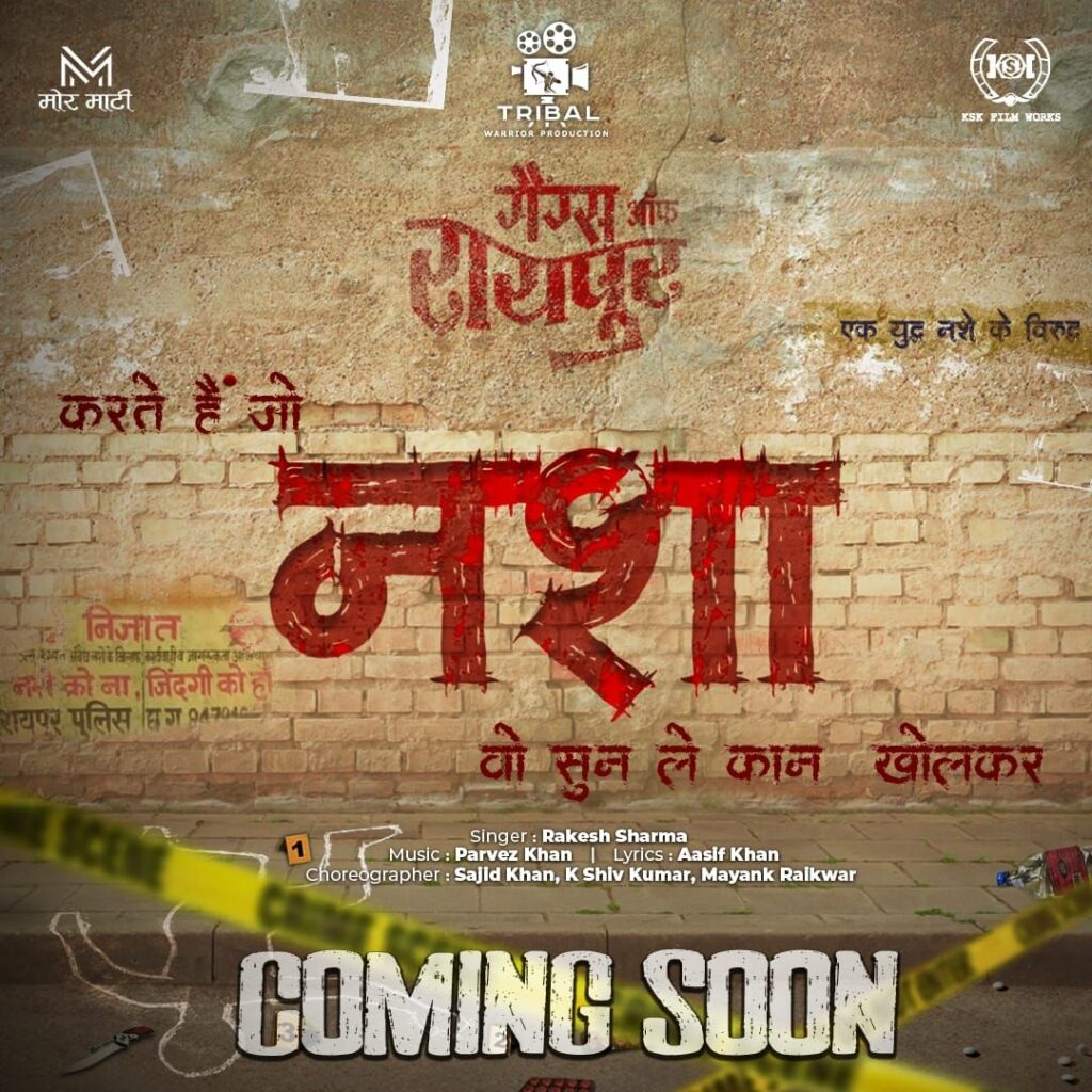 Raipur : The growing menace of drug addiction is not only destroying individual health but also tearing apart the happiness of families. Bringing these harsh realities to the screen, the upcoming film Gangs of Raipur will release its awareness-based song ‘Karte Hain Jo Nasha’ on October 14 in Raipur.
