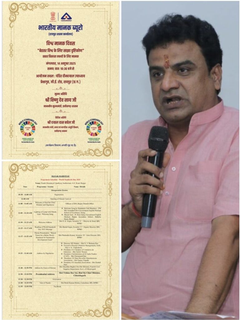 Chief Minister Vishnu Deo Sai inaugurates the World Standards Day function in Raipur as Chhattisgarh Sarafa…