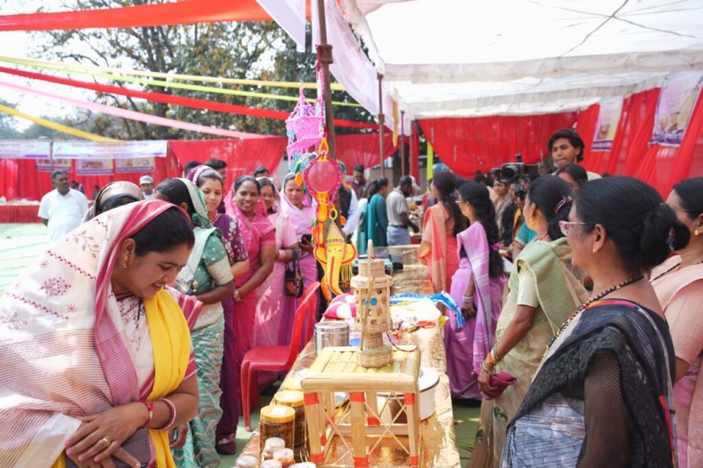 The event began with the welcome of participants and a visit by guests to stalls set up by various self-help groups displaying locally produced items and activities. Reflecting the traditional culture of the Surguja region, the Grand Suva Team presented an engaging performance of the traditional Suva dance.