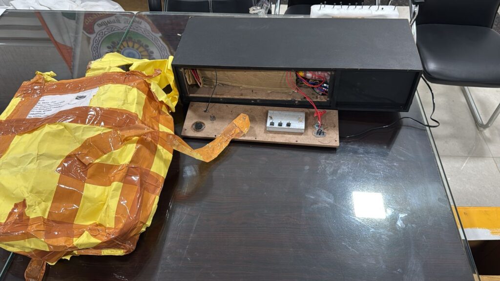 RAJNANDGAON : In a sensational breakthrough, the Khairagarh–Chhuikhadan–Gandai (KCG) Police have foiled a deadly parcel bomb conspiracy by recovering a 2-kg Improvised Explosive Device (IED) cleverly hidden inside a speaker set. The arrest of seven accused has also exposed a wider illegal explosives supply network linked to a murder plot.