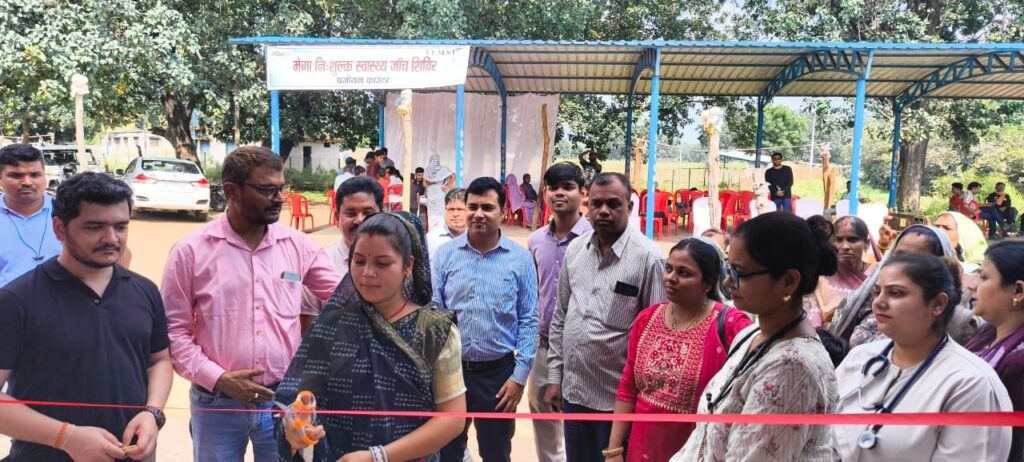 The medical team was led by Dr. Deepak Kumar Pungle and included prominent specialists from Raipur, including Dr. Apeksha Singh Geharwar (Gynecologist), Dr. Smita (Pediatrician), Dr. Priyanka Gupta (Ophthalmologist), and Dr. Chetan Chaturvedi (MD Physician & DM Cardiologist).