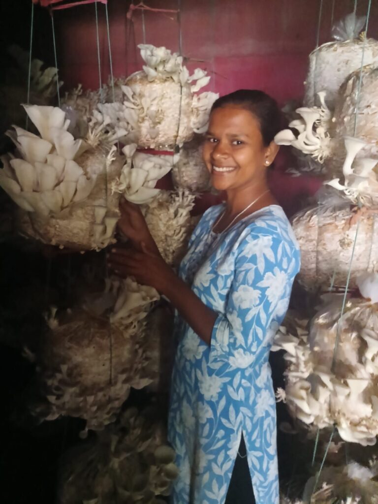 To address the issue of mushrooms’ short shelf life, women are also being trained in value-added processing, including the production of dried mushrooms, vadi, papad and pickles. These products are gaining demand in local markets and supermarkets, creating additional income streams and further strengthening household economies.